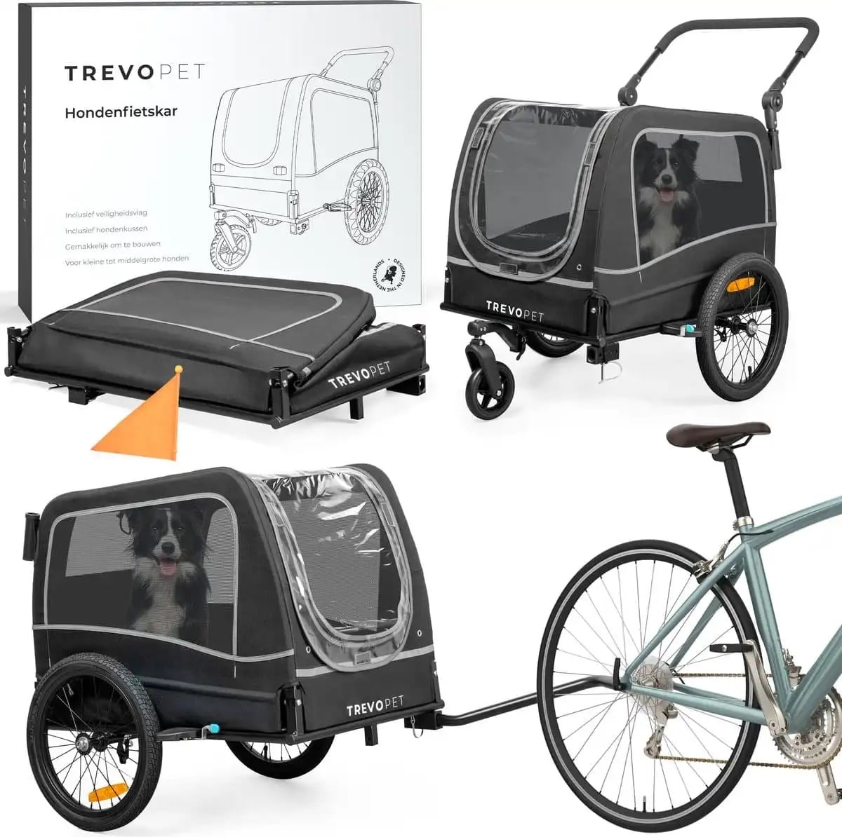 De TrevoPet hondenfietskar is jouw ideale keuze voor het comfortabel en veilig vervoeren van je hond. Dit product, dat zowel als fietskar en wandelwagen kan fungeren, zorgt ervoor dat je jouw hond gemakkelijk overal mee naartoe neemt.