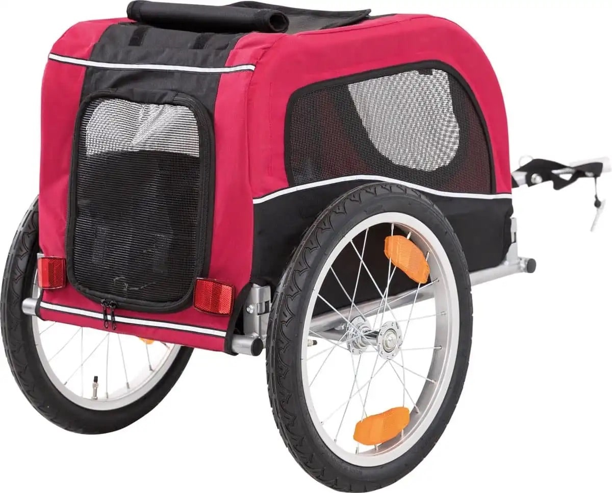 De Trixie Hondenfietskar in zwart en rood is speciaal ontworpen voor kleine hondenrassen. Met deze fietskar kun je jouw hond gemakkelijk meenemen op fietstochten zonder dat hij oververhit of uitgeput raakt. Deze kar is zeer vriendelijke voor de wat kleinere portemonnee.