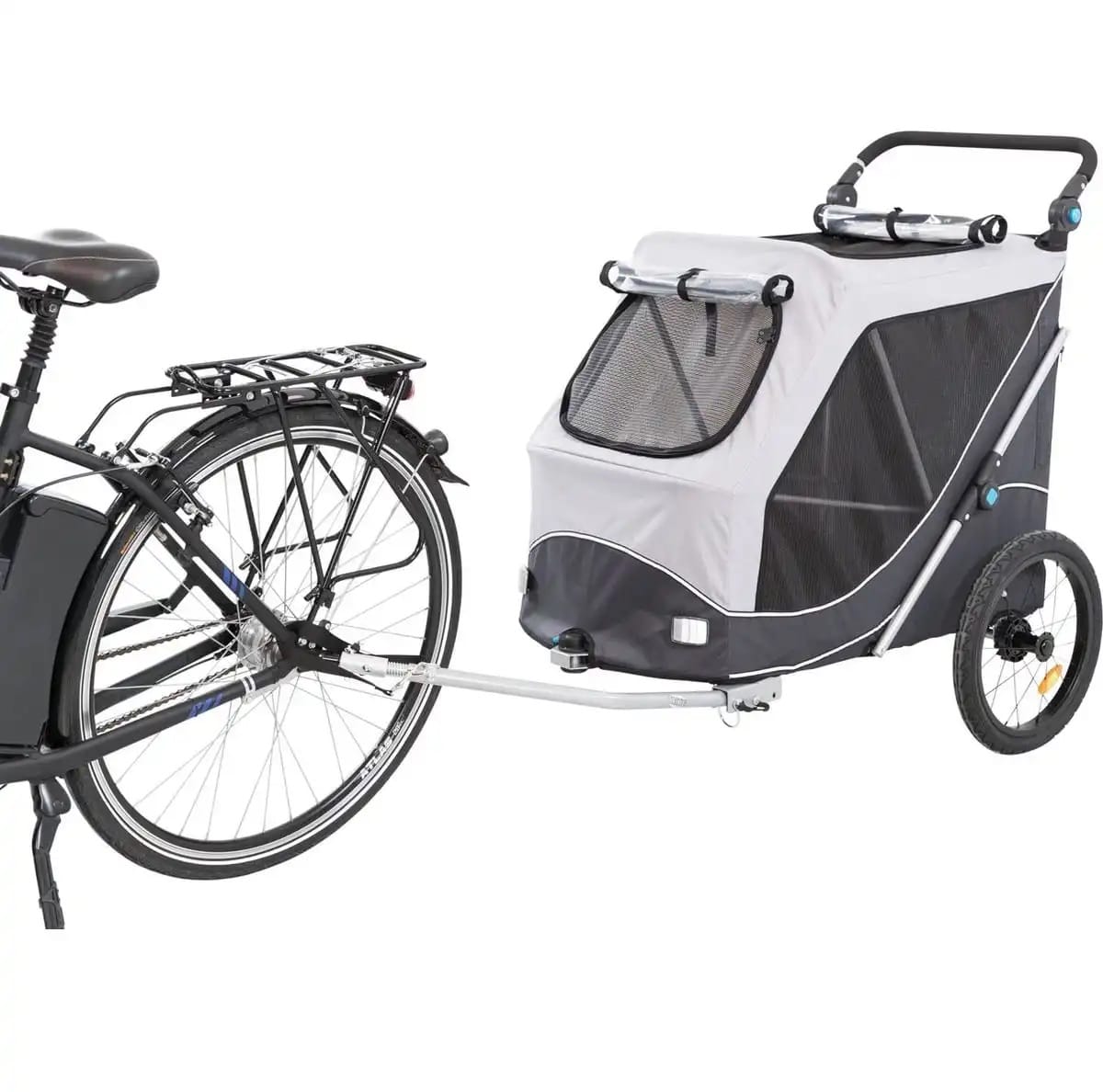 Het 2-in-1 ontwerp maakt het mogelijk om de fietskar eenvoudig om te bouwen tot een wandelwagen, ideaal voor oudere honden of honden die moeite hebben met lopen. Met een maximale belastbaarheid tot 30 kg is deze fietskar vooral geschikt voor kleinere en middelgrote honden.