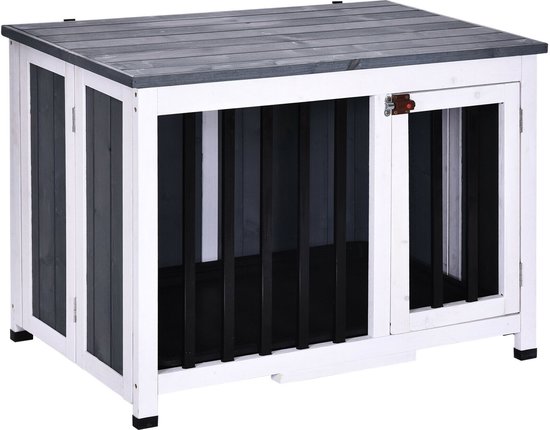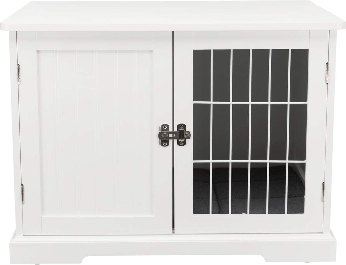 Dit is een hondenbench en witte kast in één. Deze hondenbench is gemaakt van hout en heeft een stijlvol ontwerp. Perfect voor in de woon- of slaapkamer. Let wel op dat niet alle consumenten tevreden zijn over dit product. De beoordelingen zijn wisselend, maar overwegend positief. Verder is deze hondenkast volledig afsluitbaar en ventileert de kast goed. Beide deurtjes gaan open en dicht (en zijn afsluitbaar). Dit product wordt geleverd met een kussen (met antislip onderkant).